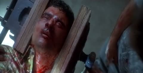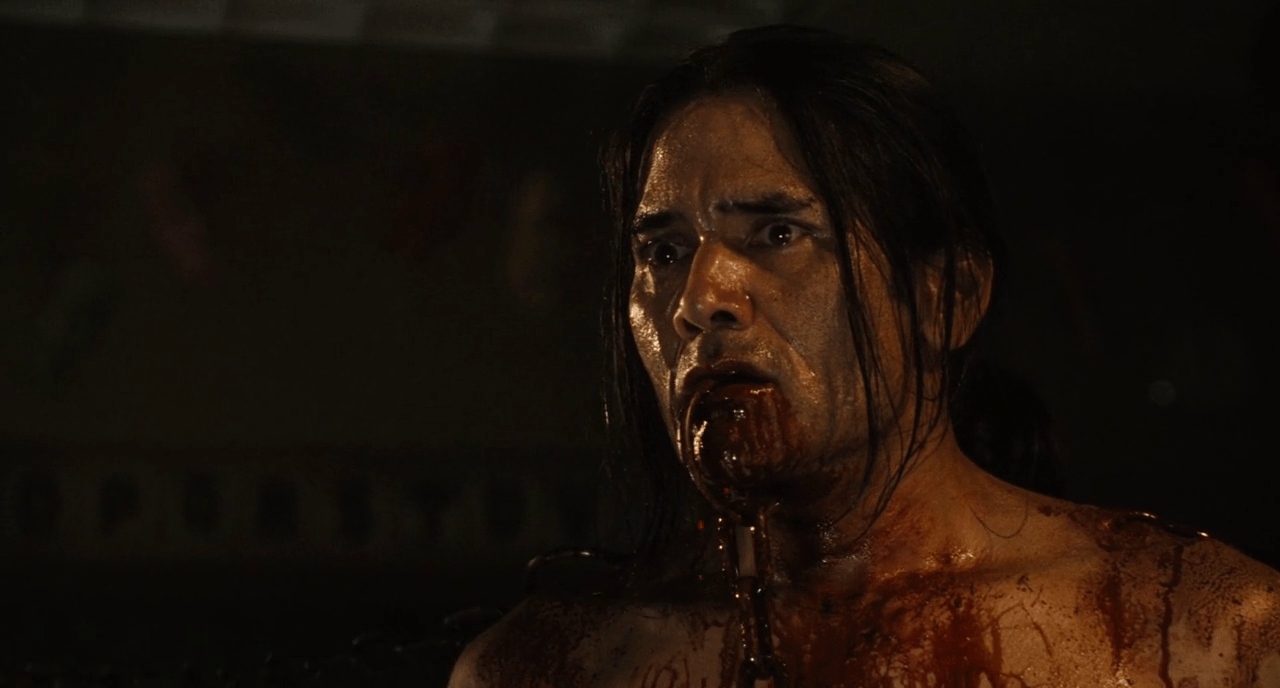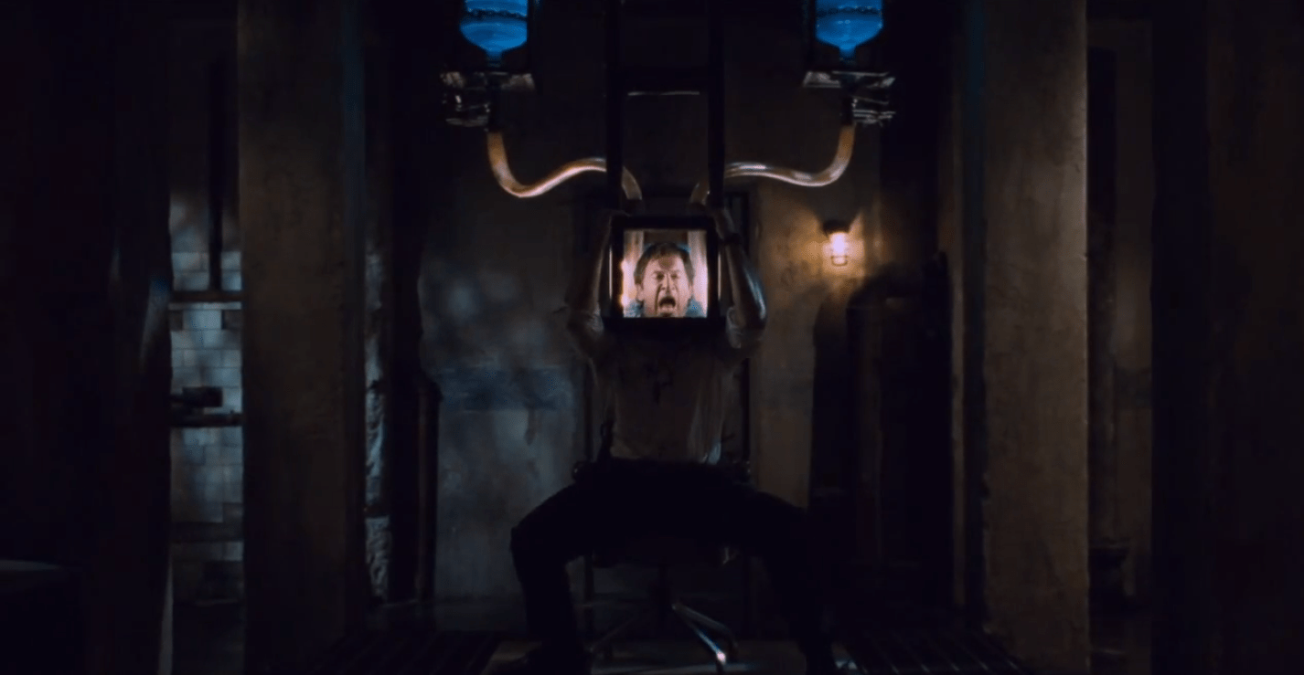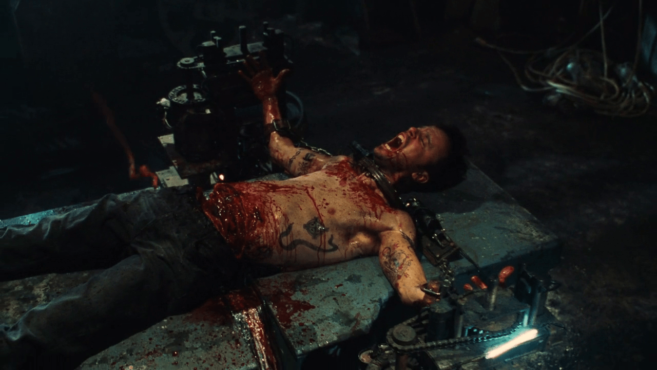 The Mausoleum Trap from Darren Lynn Bousman’s Saw IV pitched two men against one other and it was a severe case of the blind leading the dumb as one had his eyes sewed shut, and the other, his mouth. To add a little urgency to their plight, they were both connected to a massive steel mechanism via chain shackles, and had to locate the key before being pulled limb from limb. This was a wonderfully ironic trap as only one of the men could even see the lock in question, making release a troublesome endeavor.