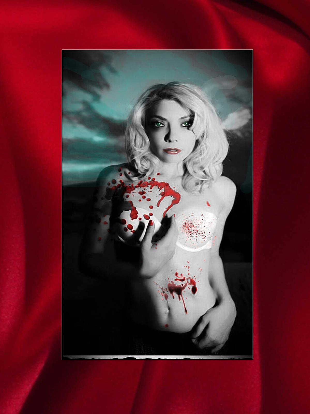 Pass me a Pale of Hog cruor. Then ladle it on. More… A little more… keep it coming, please. Crimson is the color; Lady Die, as she sprawls out on the white silk like a beautiful ink-spot, writhing, yearning and inviting, she transcends sex. Whether you urinate standing or seated, you’ll be feeling that pinch as you cast your eyes over them akin to a fisherman on crack. Feral best describes it; blood flows with every pose, whether fully bared or partly clothed. Her eyes sing such a delicate ode, that we almost blow our power node. You can take the poetry out of the man…yadda, yadda, yadda.