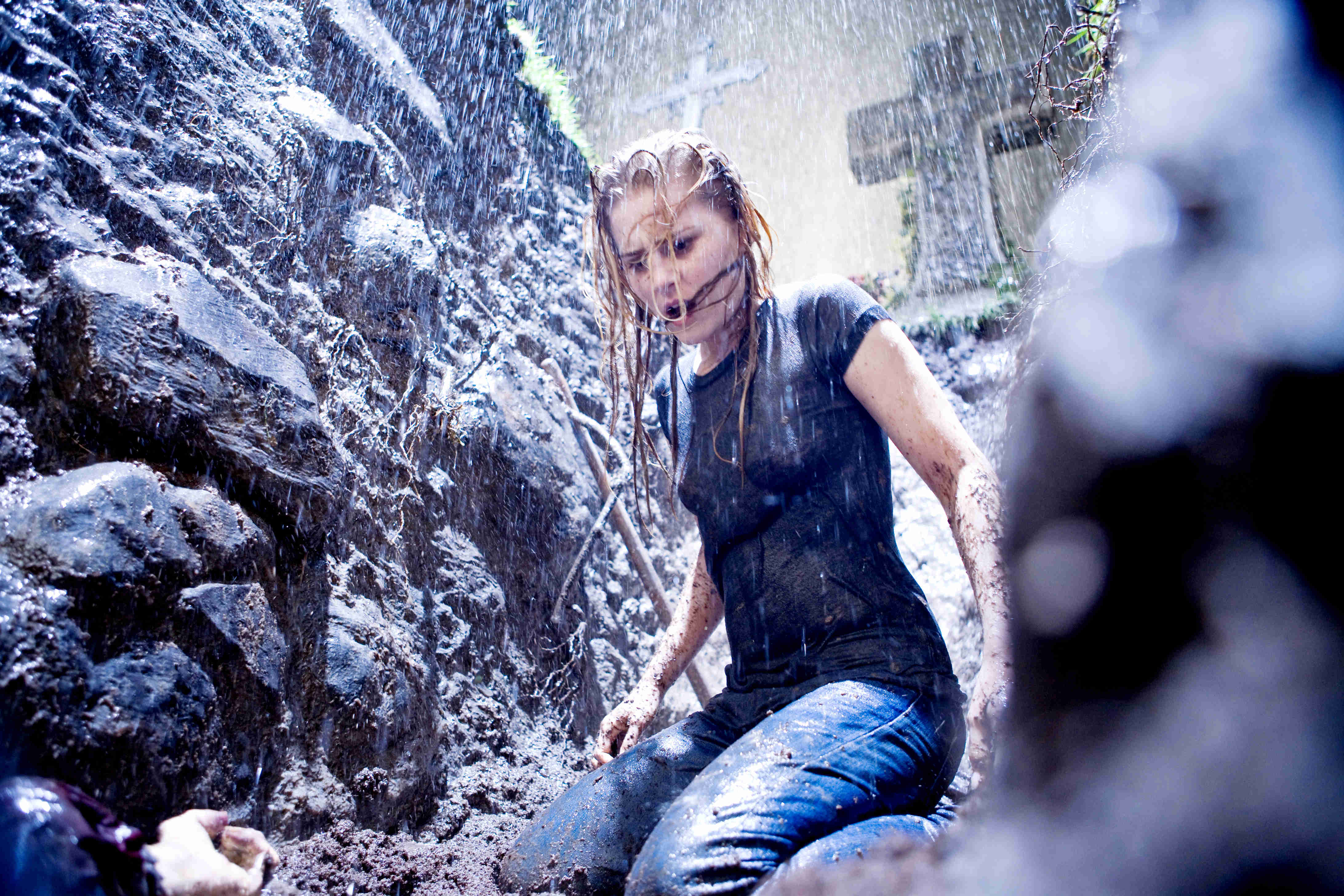 If you’ve watched Sam Raimi’s Evil Dead trilogy, then you’ll be aware of the fact that this cantankerous swine is never more happy than when putting his heroes through every last one of their paces. Hapless Ash lurched from one dire set of circumstances to the next, particularly in the sequel, having his mettle tested with intense scrutiny and relentless regularity. Perilous parallels can be drawn with our heroine here also. Mouthfuls of maggots, unsolicited embraces minus dentures, sneak assaults at every turn and even a swift right-handler culminate to make this one very, very bad day for the hapless clerk and you can almost hear Raimi chortling to himself as he conducts one helluva shit storm from behind the lens.
