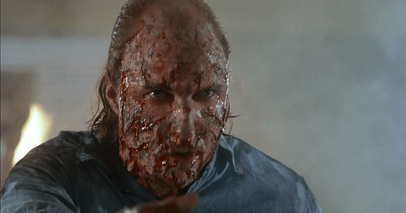 Henriksen plays burnt-out detective Lucas McCarthy who, along with his expendable sidekick (the ill-fated eighties black partner), is focusing all of his energy into bringing a serial killer to justice by whichever means necessary. Meanwhile, his target Max Jenke (played with ghoulish relish by the late Brion James) is proving a particularly slippery customer and is very much aware of McCarthy’s dogged pursuit. Meat Cleaver Max, as he has been less than affectionately labelled, is not about to come quietly and makes his point in no uncertain terms, taunting his opposite number every step of the way through a gleefully grisly opening flourish that instantly makes a mockery of any House connotations.