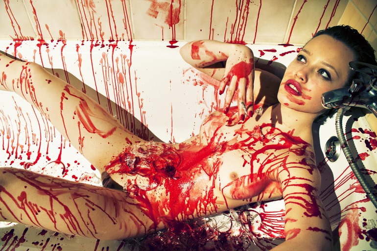 Let’s first study all the facts we have at our disposal. I shall generalize but this should give us a faint idea of what we’re dealing with at the very least. The human body is ordinarily made up of around 8-12 pints of blood, around 62,000 miles worth of blood vessels, two breasts (occasionally both sexes) and either an “innie” or an “outtie” dependent on the gifts we are given. With those facts in mind, I have absolutely no idea what my point was going to be and, to avoid the crook coming in from the curtain beside me, I say let’s all look at some titties covered in blood.