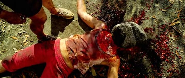 For the Grue-Guzzlers: No amount of antiseptic cream will cope with the abrasions suffered here. Throats are impressively ripped from their casing, bodies torn in half and carried about like security blankets, boulders dropped on faces and self-administered C-sections performed. There is more than enough glugging grue here to whet most appetites.