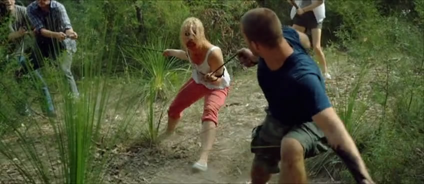 It is here that Primal reveals its hand as the group partake in humorous sparring and a divide starts to appear between them. Though characterization is by no means a pre-requisite, Reed and fellow screenwriter Nigel Christensen flesh them out rather well and, whilst largely hateful, they mostly evoke our empathy. After a botched trap whittles the numbers and a second party member contracts the sickness shit elevates and all bloody hell begins to break loose within their camp.