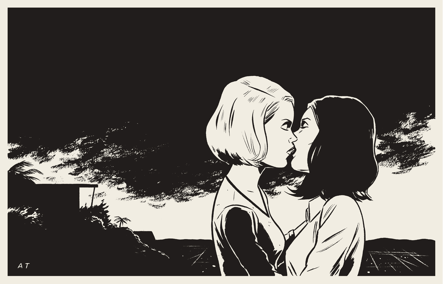“I’m scared like I can’t tell you. Of all people, you’re standing right over there… by that counter. You’re in both dreams and you’re scared too. I get even more frightened when I see how afraid you are and then I realize what it is. There’s a man… in back of this place. He’s the one who’s doing it. I can see him through the wall. I can see his face. I hope that I never see that face, ever, outside of a dream”